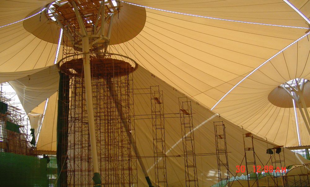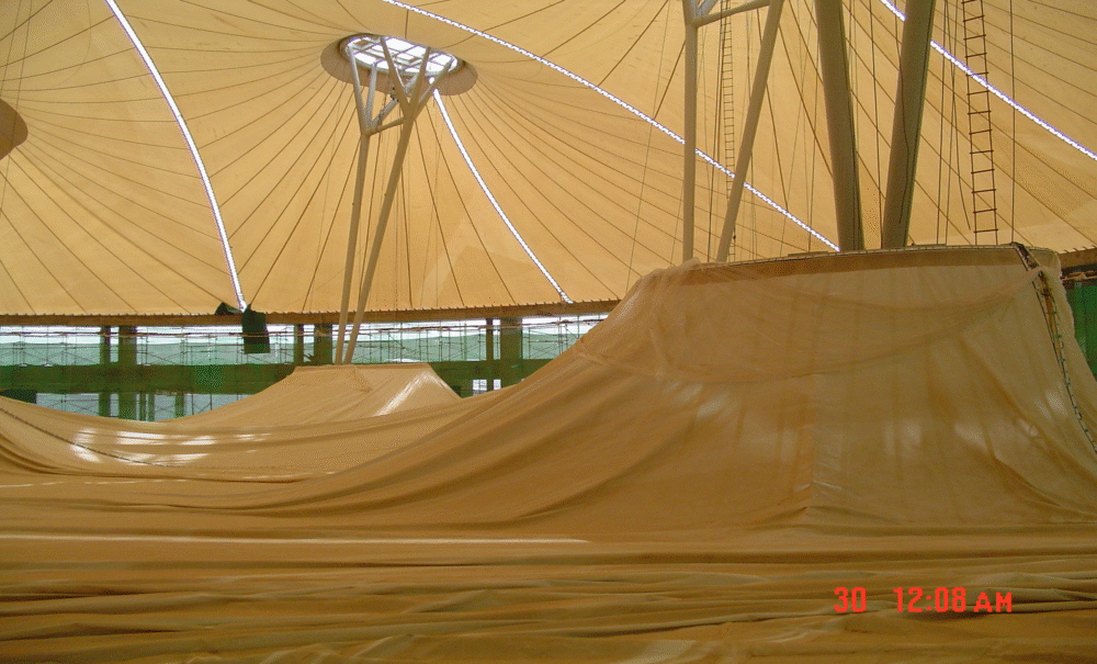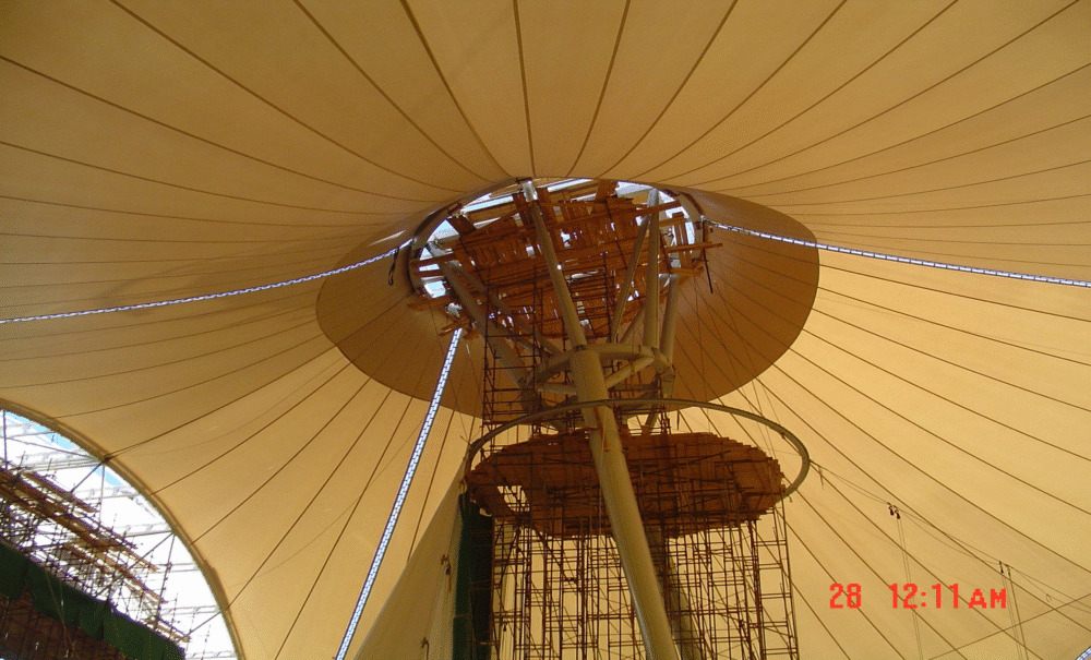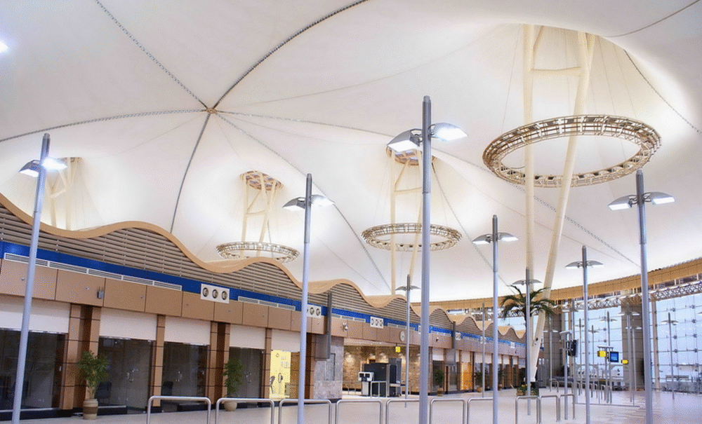 The project was designed by the Australian firm Wade Design Engineers for the American company BIRDAIR, a global leader in custom tensile fabric structures.