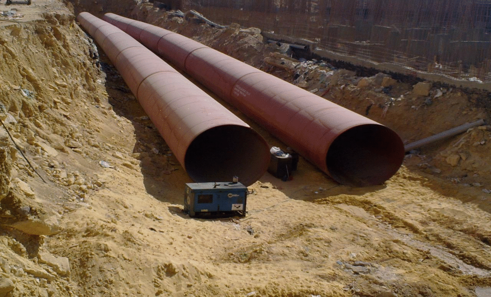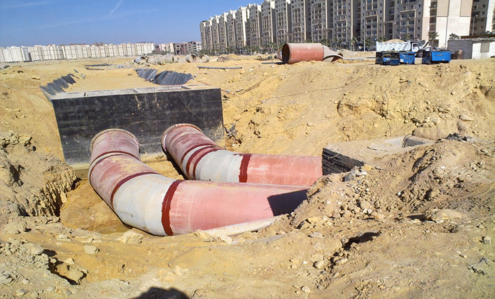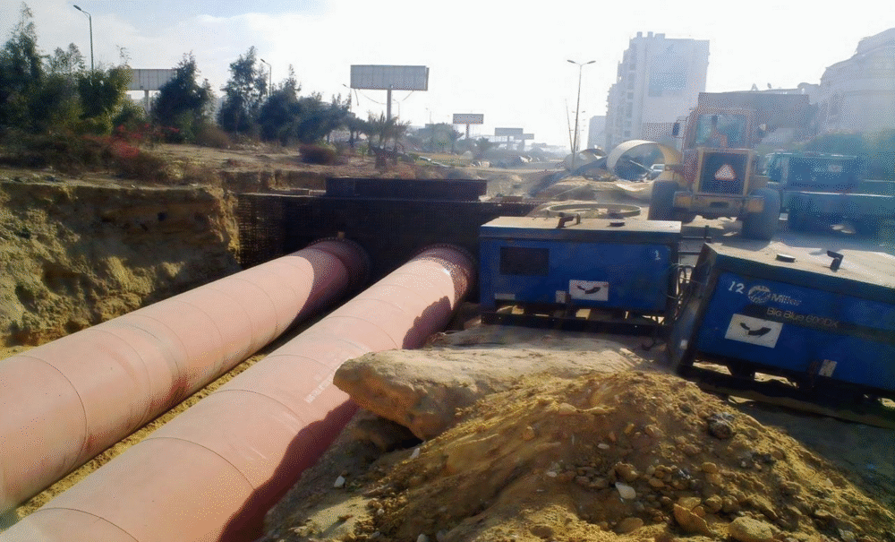 This large-scale pipeline installation project involved the complete installation of two water pipelines, with diameters ranging from 2,200 mm to 2,600 mm, designed to transport water from the River Nile to New Cairo.