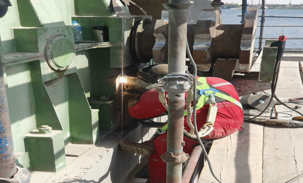 All operations include scaffolding works, welding in accordance with AWS D1.1:2000 standards, and the execution of visual, magnetic, and ultrasonic welding tests.