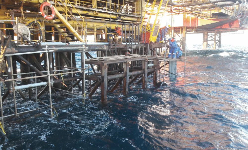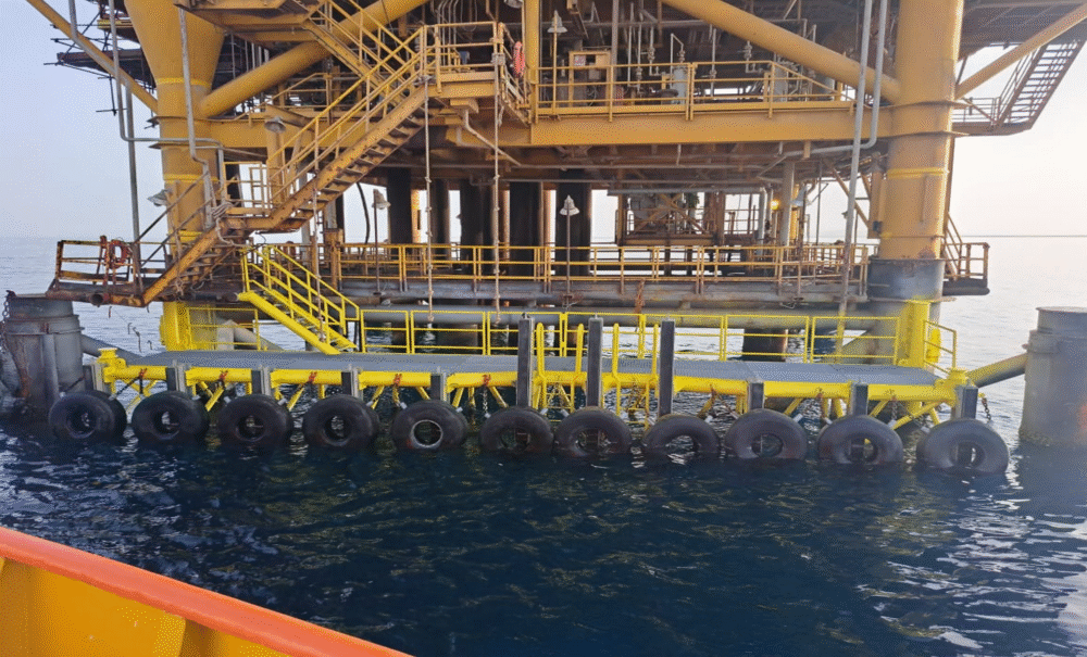 In collaboration with the Egyptian Maintenance Company (EMC), EL-KHOLY carried out the replacement of one of PETROGULF's boat-landings at platform WP-D. The scope of work included dismantling the damaged boat-landing, fabrication, welding, testing, and installation of the new structure equipped with rubber and tire fenders, in addition to providing diving services and performing underwater repairs.